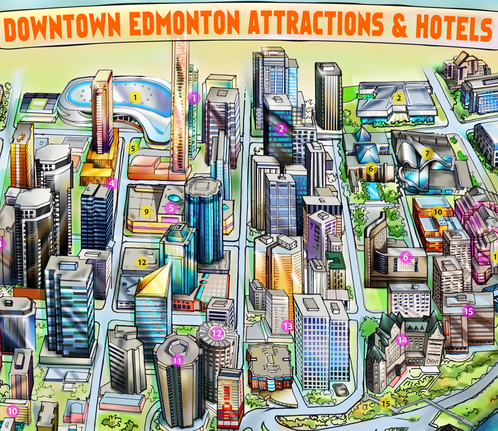 Downtown Edmonton - Hotels & Attractions Map